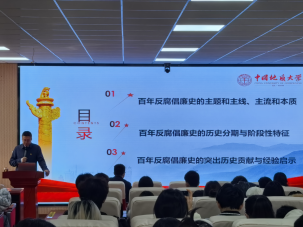 为深入学习贯彻党的二十届四中全会精神,深化廉洁修身教育,扎实推进党风廉政建设向基层延伸,引导青年学子筑牢拒腐防变思想防线,12月11日下午,公司党委书记徐岩面向秋季学期党员发展对象、入党积极分子和各党支部纪检委员讲授“中国共产党百年反腐倡廉史”专题党课。