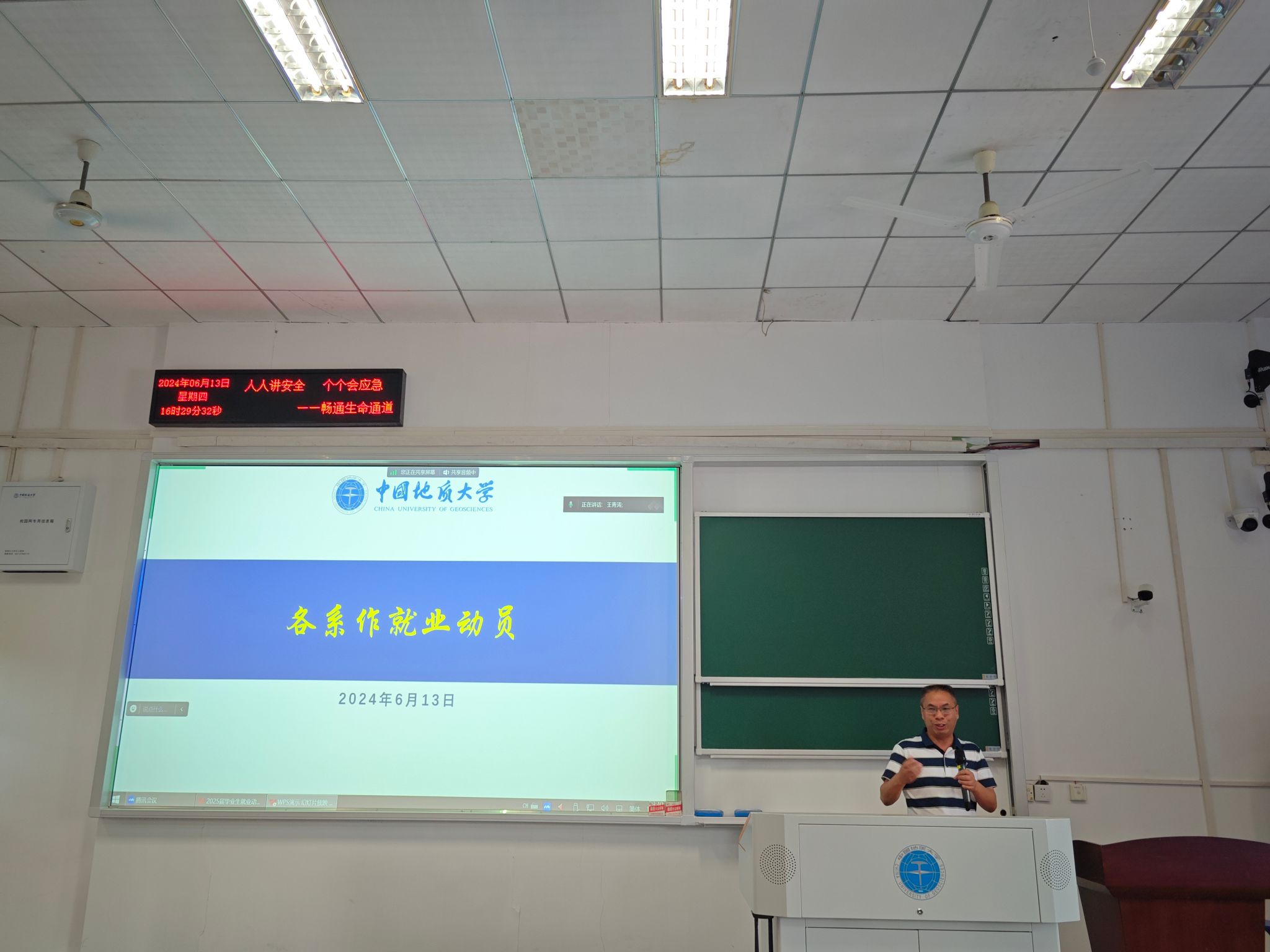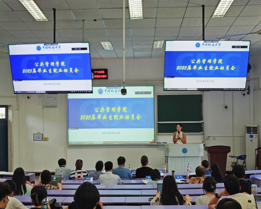 会议第二项,各系代表老师做就业动员讲话。法学系宋冬冬老师以自己员工的经历为例,强调提前规划职业生涯、善用公司资源的重要性,激励同学们明确就业目标,并为之奋斗。公共行政系李晓玉老师指出,无论选择就业还是考研,充分准备都是关键,建议毕业生们同时关注就业市场和考研动态,以应对多方面挑战。应急管理系黄砺老师则强调专业知识学习、实习经验积累及毕业环节对就业的关键作用。土地资源管理系方世明老师鼓励同学们要自信主动,积极与老师交流考研、就业及升学等问题。
