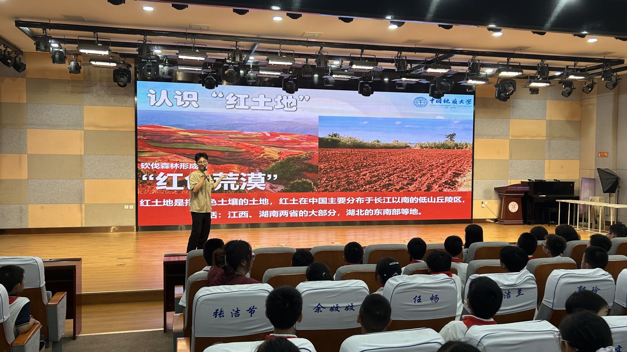今年625日是第34个全国土地日。为贯彻落实“十分珍惜、合理利用土地和切实保护耕地”的基本国策,引导员工树立保护耕地、节约土地资源的意识,620日,best365英国体育在线土地系、共青团best365英国体育在线委员会科创中心开展全国土地日科普进校园活动,活动走进洪山实验外国语小学,为同学们带来了一场精彩的“科普之旅”。活动由洪山实验外国语小学大队辅导员齐佳慧老师主持。