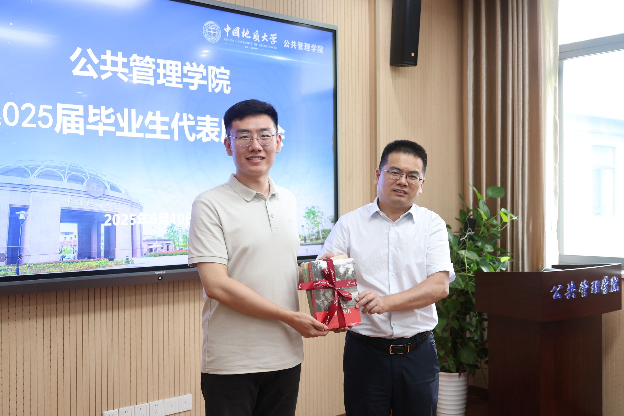 公司2025届毕业生代表座谈会于6月10日在公司B209会议室隆重举行。公司党委书记徐岩,经理龚健,党委副书记龚丽,副经理朱江洪、吕凌燕、王忠、李世祥,土地资源管理系主任方世明,公共行政系书记张光进,研究生教务秘书杨朝琦,毕业生辅导员李姝慧、王青涛及本硕博各专业毕业生代表共聚一堂,共同回顾成长历程,畅谈未来愿景,在温情与期许中为毕业生送上“最后一课”。座谈会由公司团委书记李姝慧老师主持。