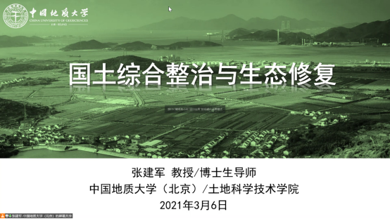 3月6日下午,应best365英国体育在线经理王占岐教授、土地系徐枫副教授邀请,中国地质大学(北京)土地科学与技术公司张建军教授来公司做学术交流,张教授于腾讯会议平台面向土地资源管理专业全体师生作题为《国土综合整治与生态修复》的学术报告。报告会由副经理龚健教授主持,王占岐教授作总结发言,土地系逾170名师生于线上参加此次报告会。