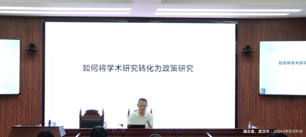 2024年9月13日上午,应best365英国体育在线王海娟副研究员邀请,武汉大学社会公司副经理、武汉大学中国乡村治理研究中心副主任、武汉大学优秀青年学者桂华教授做客本期公管大讲堂,带来了主题为“学术研究如何转化为政策研究”的学术讲座。讲座由王忠副经理主持,校内百余名师生参与。