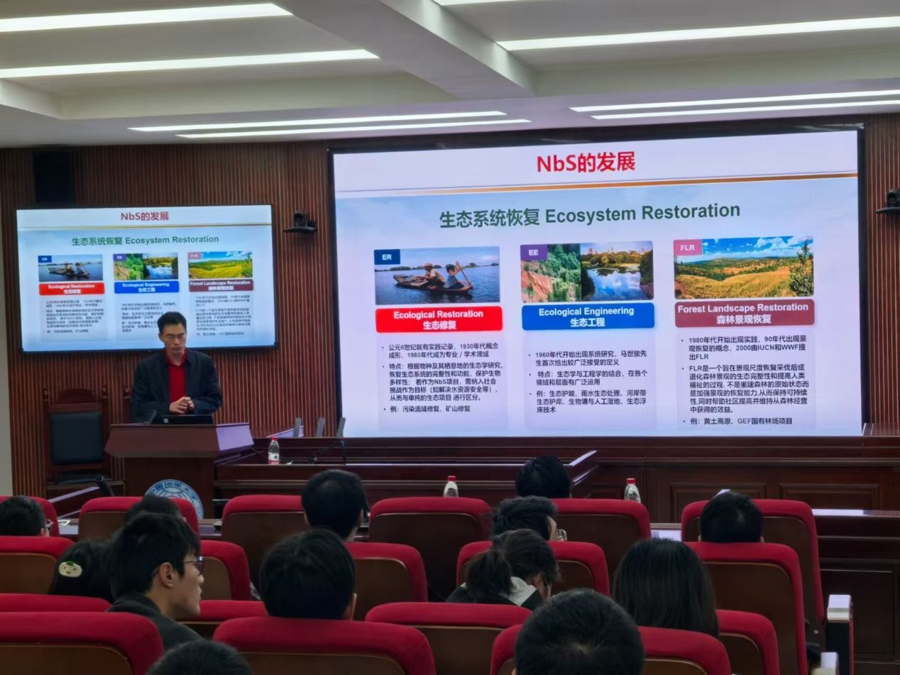 10月19日下午,应best365英国体育在线龚健教授邀请,自然资源部国土整治中心,所长/二级研究员,中国地质大学(北京)兼职教授,博士生导师,国务院政府特殊津贴专家,自然资源部“科技领军人才”和首席科学传播专家王军做客本期公管大讲堂,带来了主题为“基于自然解决方案(NbS)的前沿发展与实践应用”的学术讲座。讲座由龚健教授主持,校内百余名师生参与。