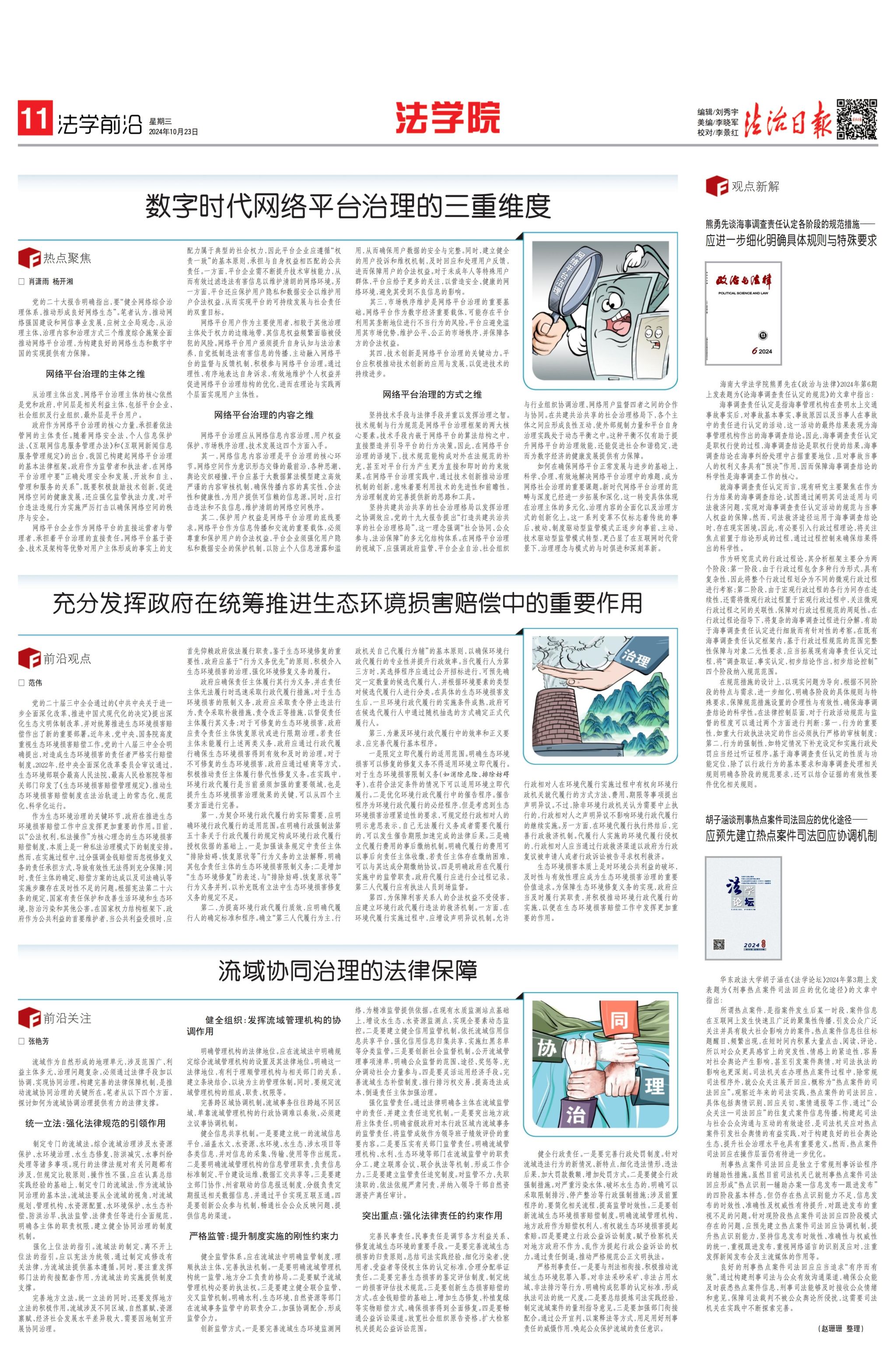 公司法学系副教授张艳芳在法治日报发表文章,对流域协同治理的法律保障进行探讨。