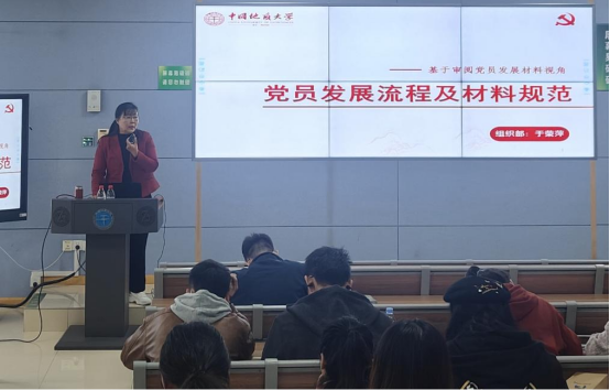随后,党委组织部专职组织员于荣萍进行《党员发展流程及材料规范》培训。于老师结合《中国共产党发展党员工作细则》规定和具体案例,详细介绍了党员发展的组织流程和党员发展过程的材料规范。培训过程中各公司党务工作者就发展党员工作中遇到的问题和疑惑进行了讨论交流,分享了自身工作经验。