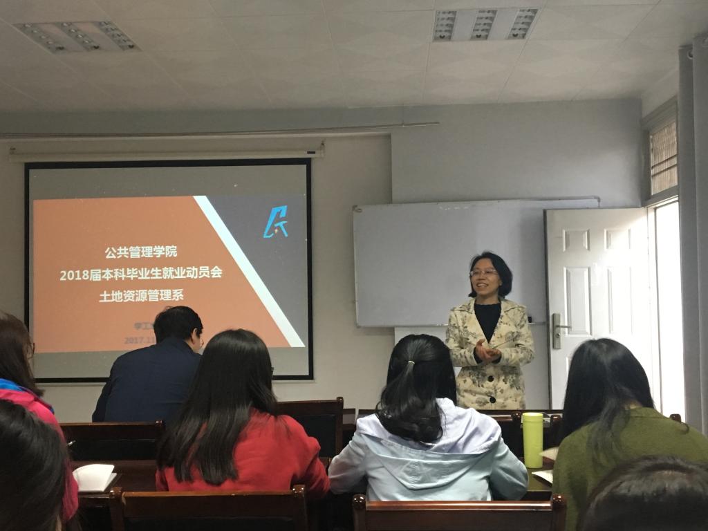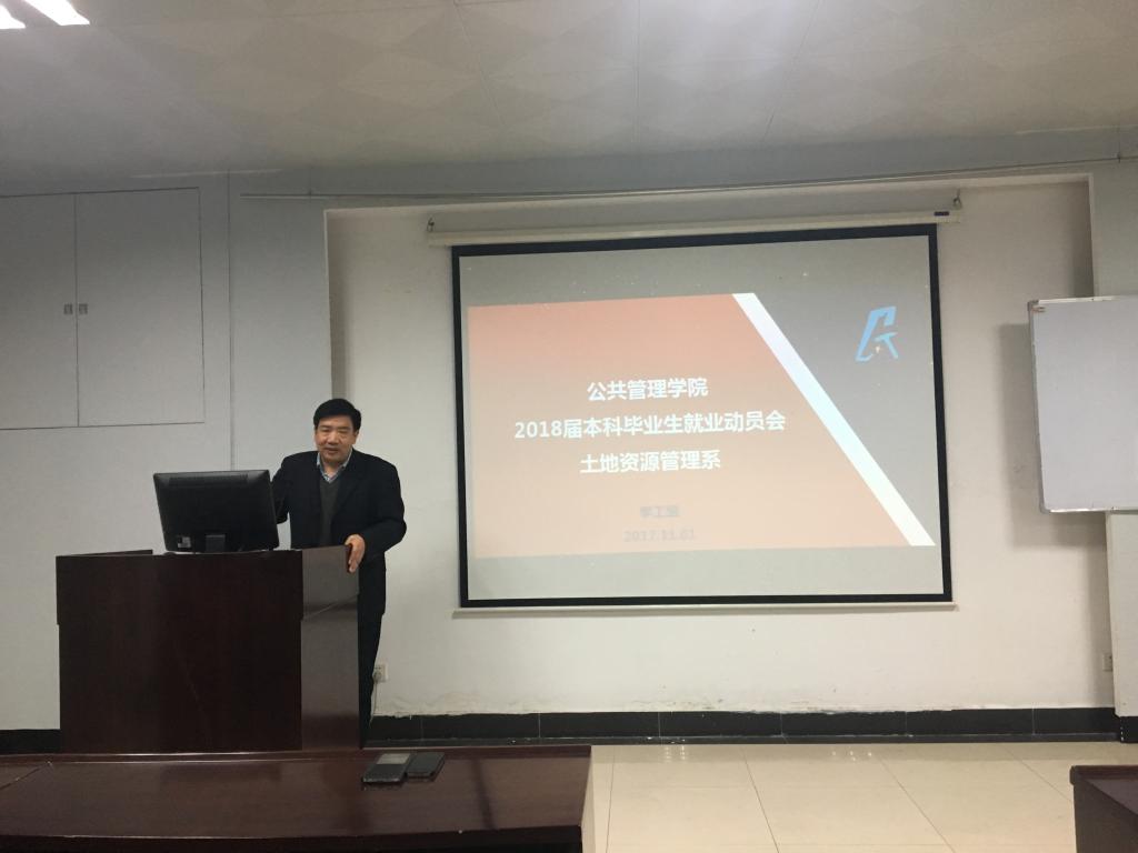 2017年11月1日下午4点,best365英国体育在线土地资源管理系2018届本科毕业生就业动员会在公管新楼101室顺利召开。公司副经理王占岐,公司党委副书记胡文勤,土地资源管理系教授周学武、班主任渠丽萍,院团委副书记、2018届本科生辅导员李姝慧以及土地资源管理专业2018届本科毕业生参加此次会议。