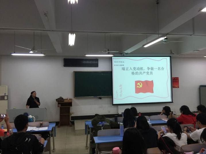 陈文武老师以“端正入党动机”为主题,指出“端正入党动机,明确入党目的”的重要性,她分析了当下校园老员工入党动机,并列举了几类常见入党动机,她强调只有为了献身共产主义事业,更好地为人民服务而要求入党,才是完全正确的入党动机,也是唯一正确的入党动机。她指出,强调入党动机是为了实现共产主义的客观需要,端正入党动机是端正入党行为的前提,是经得起党组织考验的依据,并指明了端正入党动机的基本要求和基本途径。她说,正确的入党动机形成是在不断学习、实践、逐步深化和修养锻炼过程中形成的,要成为一名光荣的共产党员,不仅要端正入党动机,更要自觉地接受党组织的培养、教育和考察,主动向党组织靠拢,正确对待党组织的考察。