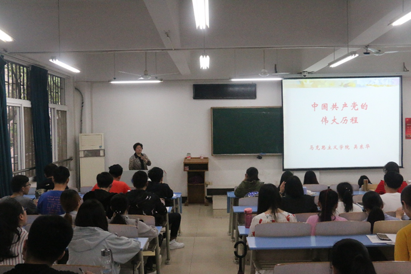 吴东华老师以“中国共产党的光辉历程”为主题,以“中国共产党成立的历史必然性或历史条件”和“中国共产党领导中国革命、建设和改革的历程”为主线,系统生动地向学员们介绍了我们党带领全国各族人民完成革命、建设社会主义中国的伟大历程。她在讲授过程中深刻回答了为什么工人阶级能成为革命的领导力量,为什么我们的党在曲折中能不断前进,为什么我们的党能在90多年的历程中带领全国各族人民走向富强。
