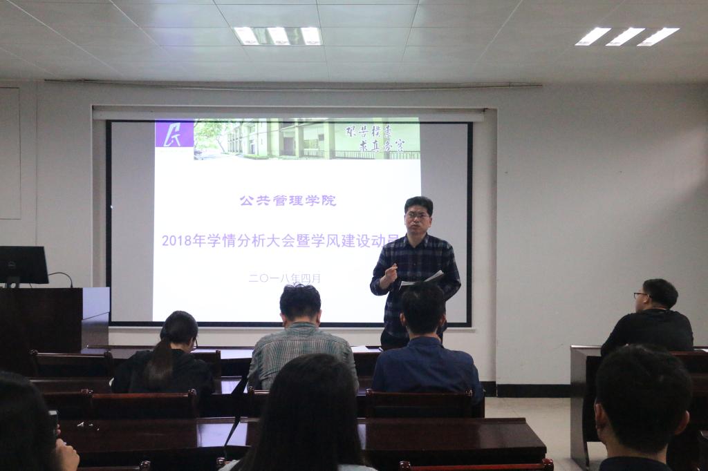 4月12日下午,2018年学情分析大会暨学风建设动员会于公管新楼101举行,公司党委副书记胡文勤、2017、2016、2015级各班学务指导老师和班主任、各年级辅导员参加了本次会议。