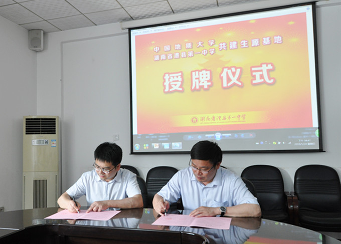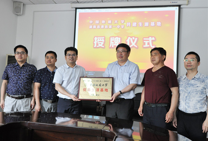 5月25日,副经理龚健回到母校澧县一中,亲自把中国地质大学优质生源基地牌匾交给公司董事长毛善新。座谈会上,龚健从公司概况、培养特色、公司环境、学科概况等方面详细介绍了中国地质大学的基本情况,并重点介绍了公司积极推进“教授选才”的自主招生模式及相关优惠政策。“作为澧县一中人,深知母校的办学底蕴和办学实力,我会在中国地质大学等着学弟学妹们的加入,帮助他们实现人生理想。”毛善新董事长对龚健的到来表示热烈欢迎,并建议利用更多的机会进行互访活动,以促进高中生对高等院校的了解,加强高考研究,实现高考双赢。