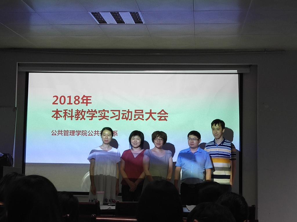 (通讯员 张士菊 李想)2018年6月22日,公司公共行政系在实验楼101召开了2018年本科教学实习动员大会。出席会议的有秭归实习的带队队长田家华教授、陈星博士,洪山区政府实习的指导老师苏黎兰博士,孝感实习的指导老师黄砺博士,以及2016级的行政管理和公共事业管理专业的全体本科生。本次会议由公共行政系系主任李世祥教授主持。