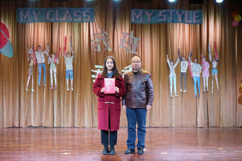 党委副书记刘国华为获得第三名班级174182班颁奖;