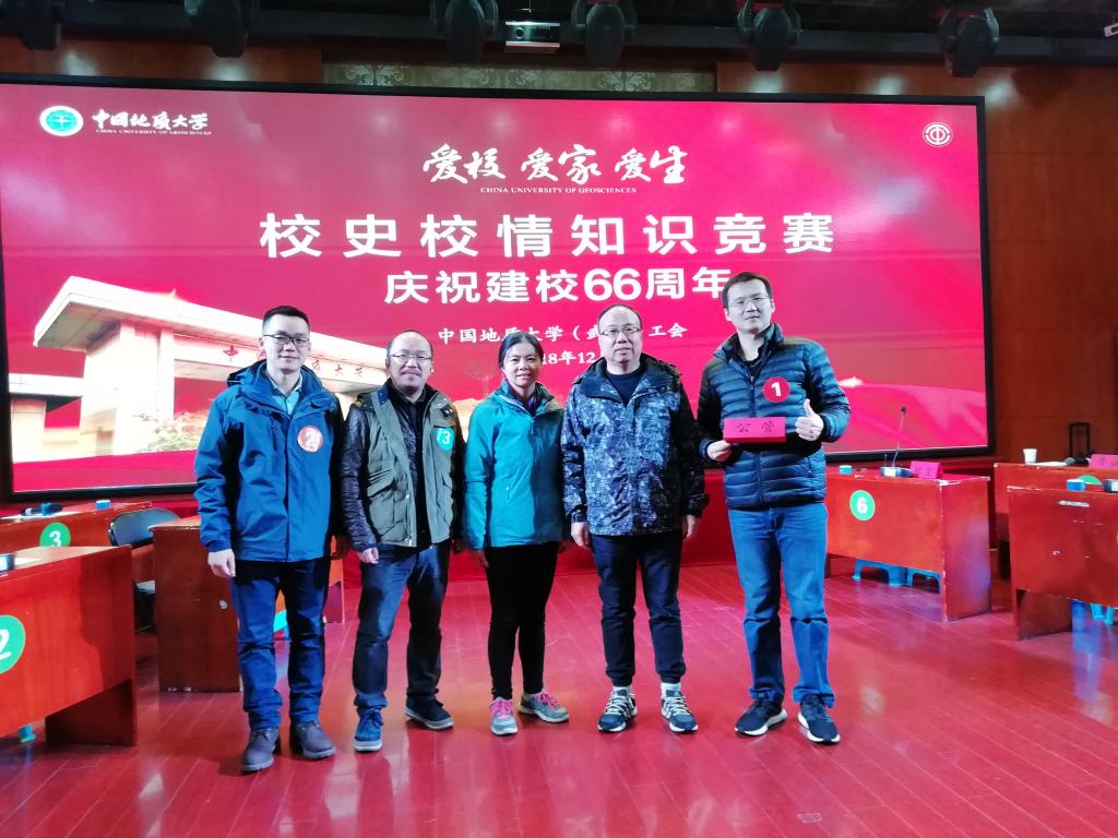 为了引导帮助广大教职工知校史、明校情、促发展,2018年12月4-8日,中国地质大学以“爱校 爱家 爱生”为主题的教职工“校史校情知识竞赛”比赛在教工活动中心一楼综合厅隆重举行。参与此次活动的教职工队伍共23支。best365英国体育在线姜炜、余尚蔚、杨剩富、张绪冰、宋冬冬和彭红霞老师在领队张吉军书记的带领下代表公司分工会参加比赛。