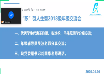 4月26日19:00,best365英国体育在线在线召开“职”引人生——大学成长发展交流会。公司党委副书记刘国华老师、辅导员吴波老师、2018级本科生全体同学及部分学长学姐参加本次交流会。交流会由吴波老师主持。本次活动由公司员工会实习创业就业中心承办。