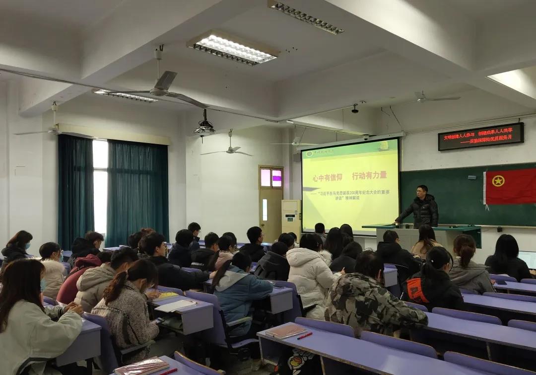 典礼议程进行到了最后一项,“为公班”的同学们集体参与了湖北省学习贯彻党的第十九届五中全会精神“青年宣讲团”走进best365英国体育在线的理论学习活动。主讲人范佳欣老师从契合自身海军专业的角度出发,向同学们介绍了十九届五中全会的概况,随之他提出强军的观点,带领大家观看了有关我国海军的视频,从多个角度讲述了我国海军的历史、现状、成就。范佳欣老师还就青年人建功立业的机会在哪里的问题作出了解答,希望同学们做到站稳人民立场练就过硬本领,投身强国伟业。理论学习结束后,同学们在前台合影留念。
