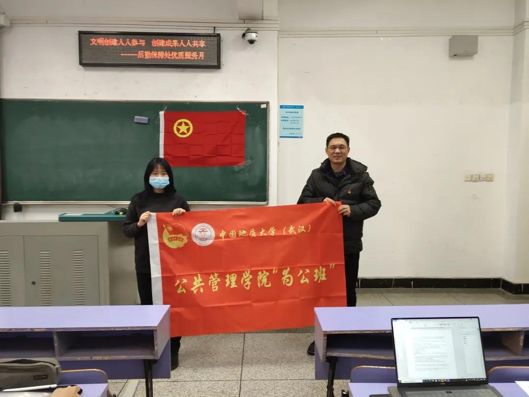 议程到了第七项也接近尾声,刘国华副书记将班旗授予班长刘明竞雪,标志着“为公班”正式落成,老师们及班级同学集体留影。