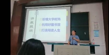 本次新生入学教育课,徐世球老师首先通过引用前阿根廷国立图书馆馆长博尔赫斯的名言——“如果有天堂,那应该是图书馆的模样。”概括性地指出了图书馆的重要性。而后,老师通过三大部分进行了具体的阐述,分别是:珍惜大学时光;利用好图书馆;打造阅读人生。