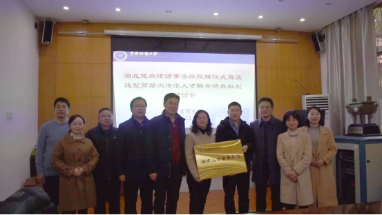 (通讯员李继杰)12月15日,湖北楚尚律师事务所法律人才培养基地授牌仪式暨实践型高层次法治人才联合培养机制研讨会在公司举行。公司党委书记张宽裕、副经理才惠莲、副经理王忠、法学系班子成员、法学系部分教师,湖北楚尚律师事务所党支部书记付凤鸣、主任张靓、合伙人彭洪等出席仪式。会议由副经理王忠主持。