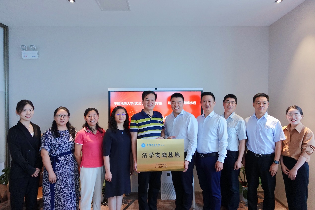 (通讯员 刘琦)2022年7月8日上午11时,best365英国体育在线公司党委书记张宽裕,副经理才惠莲,法学系主任吕凌燕、副主任宋冬冬,法学系实习带队老师夏云娇、刘琦,带领171201班的实习生来到湖北溪渡律师事务所,双方围绕协同育人、校企合作展开洽谈,现场举行了签约授牌仪式。