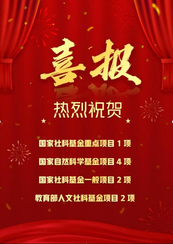 2023年度国家、教育部各类基金项目委员会已相继公布项目申报评审结果,best365英国体育在线共获得9项资助,其中国家社科基金重点项目1项,国家自然科学基金项目4项(其中面上3项),国家社科基金一般项目2项,教育部人文社科基金项目2项。